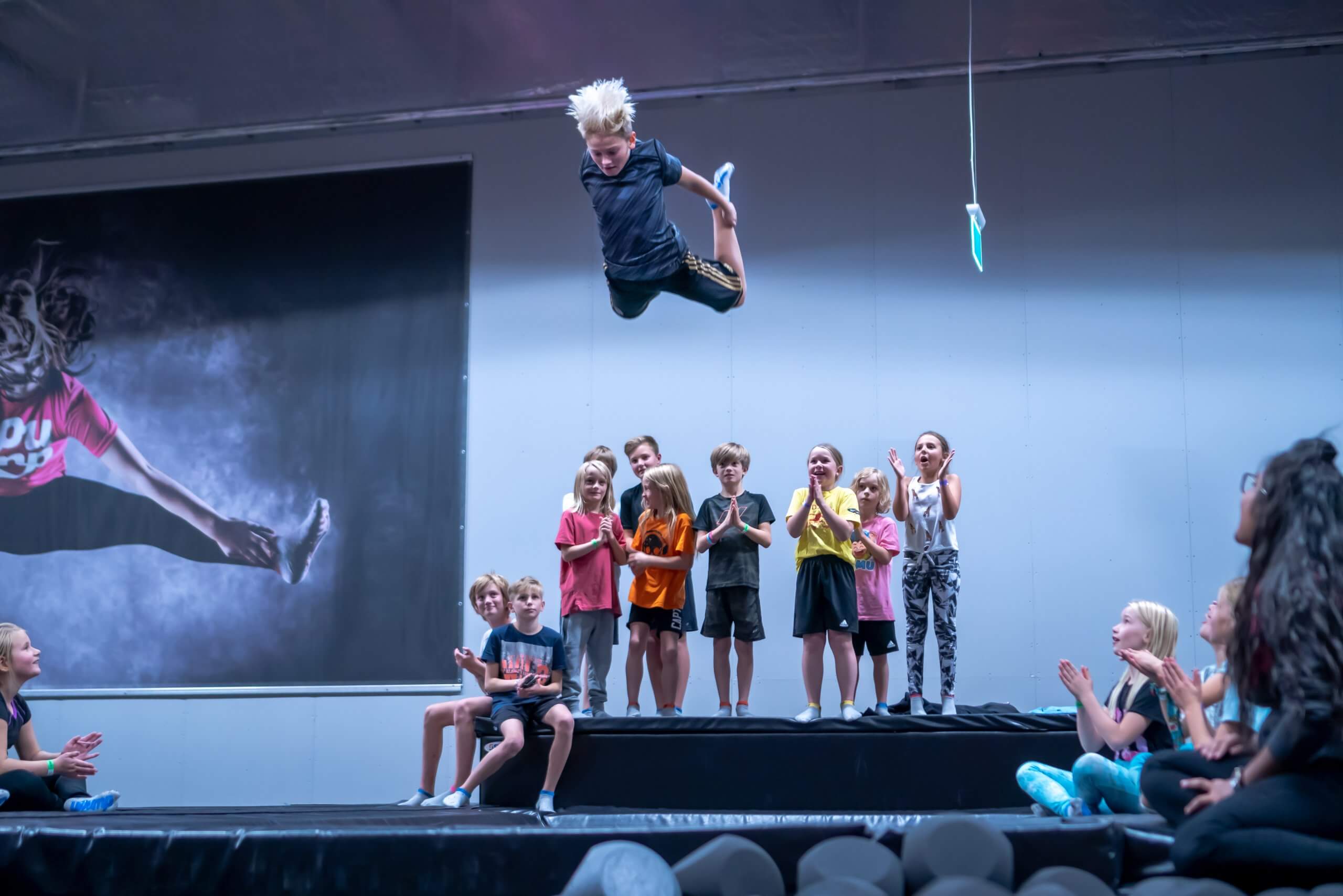 Kroppskontroll, grundläggande kunskaper inom trampolin samt kunna utföra akrobatiska moment som stå på händer, framåtvolt och bakåtvolt. För dig med mer erfaranhet finns möjlighet att öva på kombinationer, rondat flickis, dubbelvolt, flickis med skruv och mycket mer!